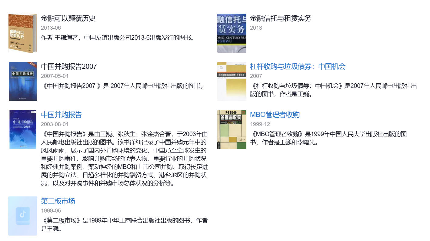 1997年5月,王巍创办了万盟投资管理有限公司,专注于企业购并及相应的重组、融资和上市业务。